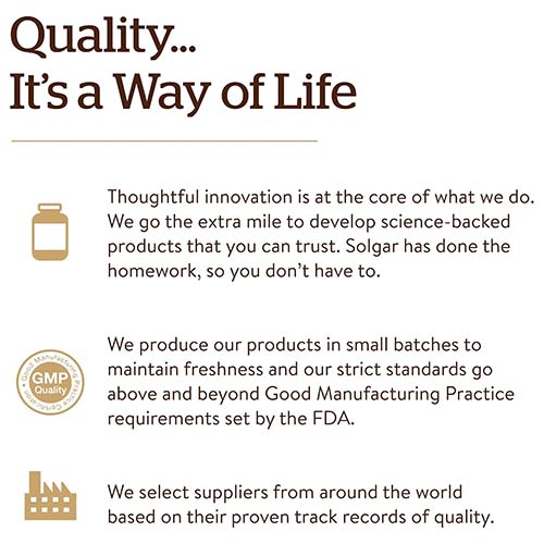 این سافتژلهای Solgar فاقد مواد گلوتن، گندم، لبنیات، مخمر، نگهدارندهها، شیرینکنندهها، طعمدهندهها یا رنگهای مصنوعی هستند. همچنین فاقد شکر، نمک و نشاستهاند. مصرف روزانه ۲ عدد مجاز است. با این حال، زنان باردار یا شیرده و افرادی که مشکلات سلامتی دارند باید پیش از مصرف با پزشک مشورت کنند.