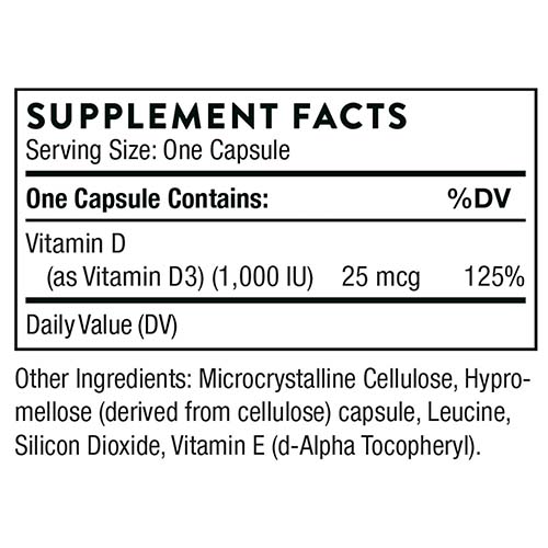 THORNE ویتامین D-1000 – مکمل ویتامین D3 – ۱۰۰۰ واحد بینالمللی | پشتیبانی از سلامت استخوانها، دندانها، عضلات، قلب و عملکرد سیستم ایمنی | فاقد گلوتن، لبنیات و سویا | ۹۰ عدد کپسول
