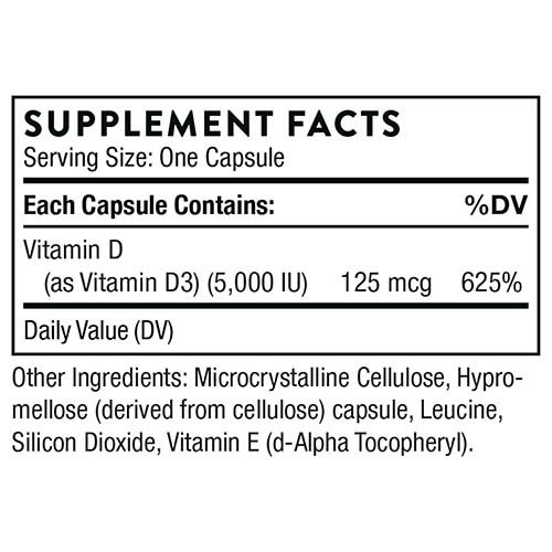 THORNE ویتامین D-5000 – مکمل ویتامین D3 – ۵۰۰۰ واحد بینالمللی | ۶۰ عدد کپسول | پشتیبانی از سلامت استخوانها، دندانها، عضلات، قلب و سیستم ایمنی | دارای تأییدیه NSF برای ورزشکاران | فاقد لبنیات و سویا